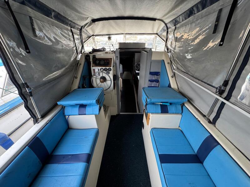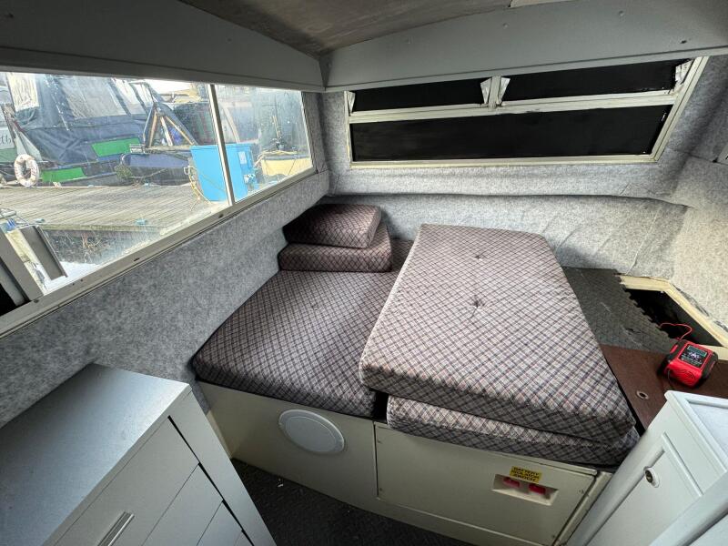 Aft, the rear cabin can be left set up as a permanent double berth and also includes a separate toilet compartment, offering privacy and convenience.